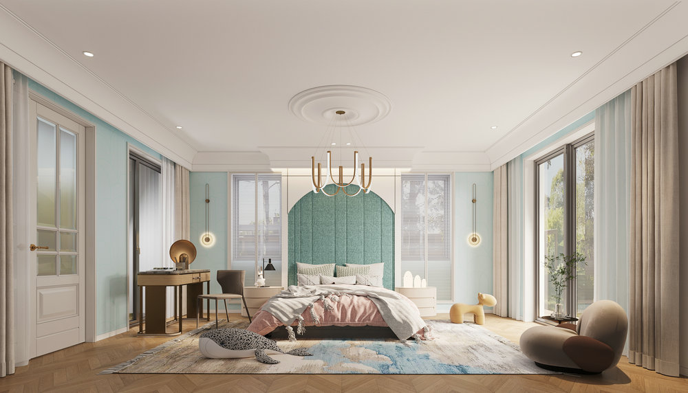 ★设计说明:融合传统美式与现代简约相结合,在整体美式的统一格调下搭配现代家居,追求舒适、自然和个性化,既凸显美式风格的优雅又体现现代生活的品质。
